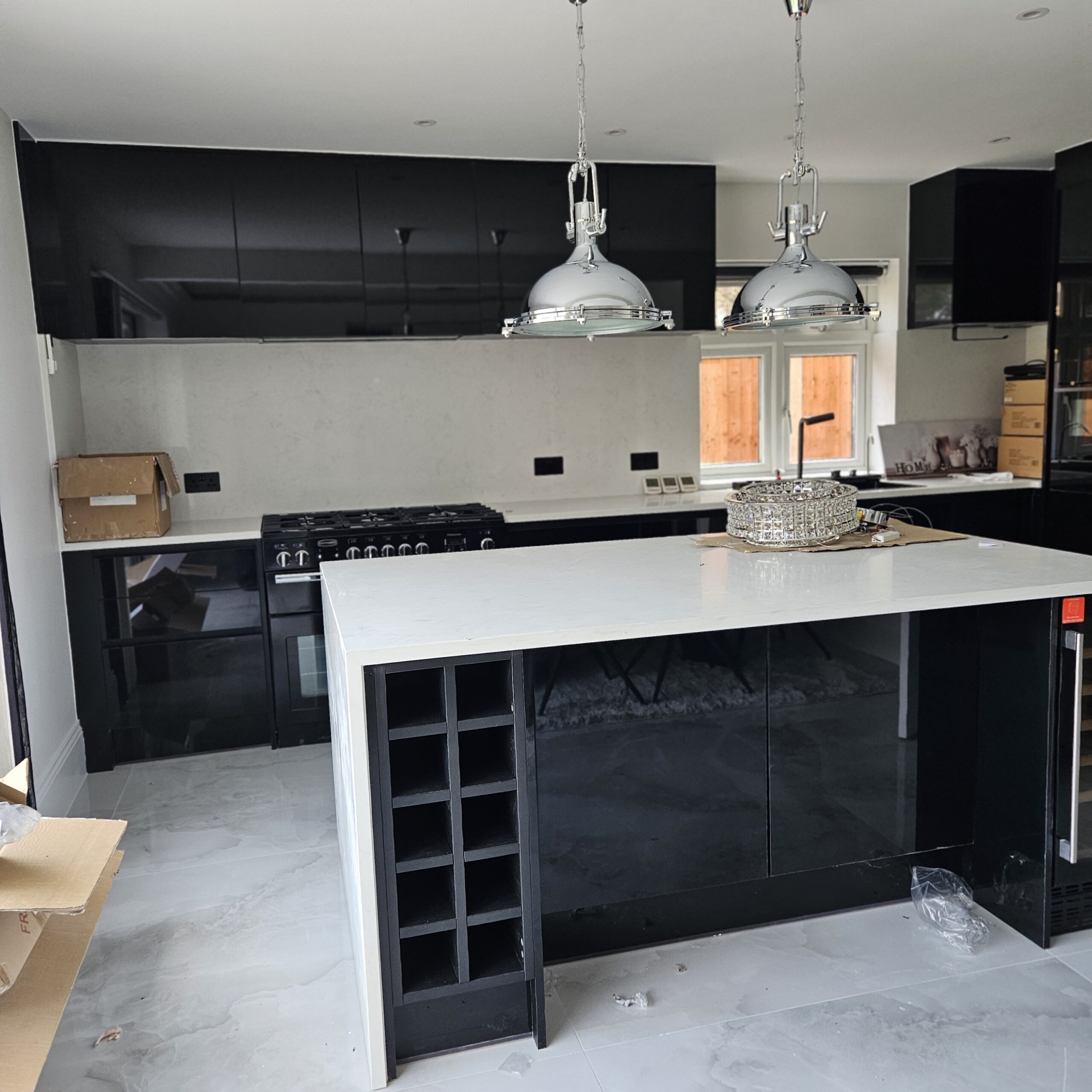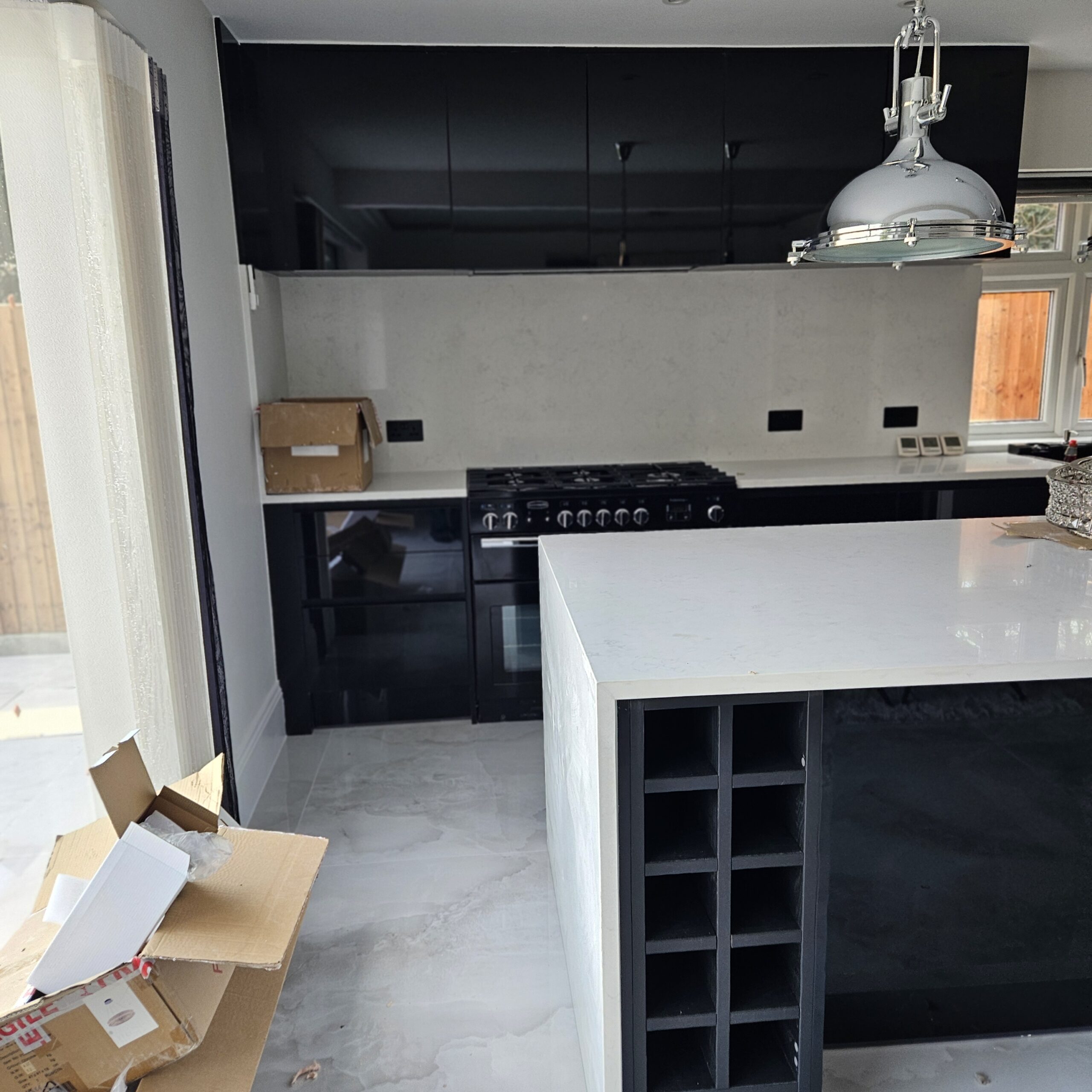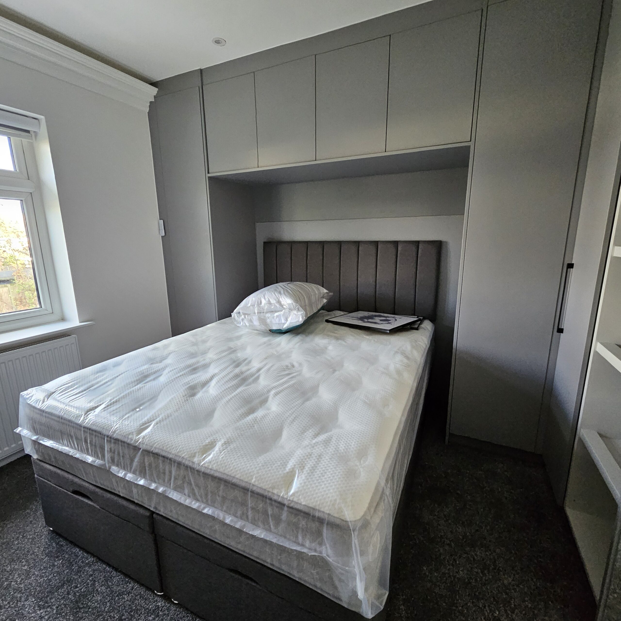In the master bedroom, we continued Mrs. Osho’s full home transformation with a beautifully tailored space featuring bespoke fitted wardrobes, elegant storage units, and a refined layout that enhances comfort and luxury. The custom wardrobe design maximises every inch of space while maintaining a clean, modern aesthetic that complements the rest of the home. This master bedroom installation showcases our commitment to premium craftsmanship and our expertise in fitted bedroom furniture, custom wardrobes, and bespoke interior solutions.